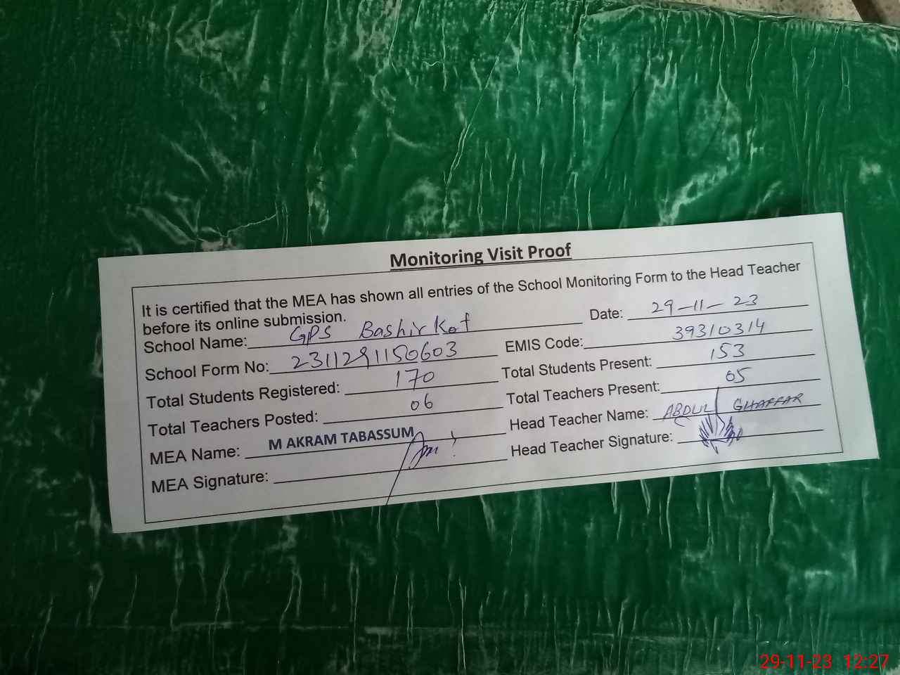 | EMIS Code: 39310314 | Name of School: GPS BASHIR KOT | |||