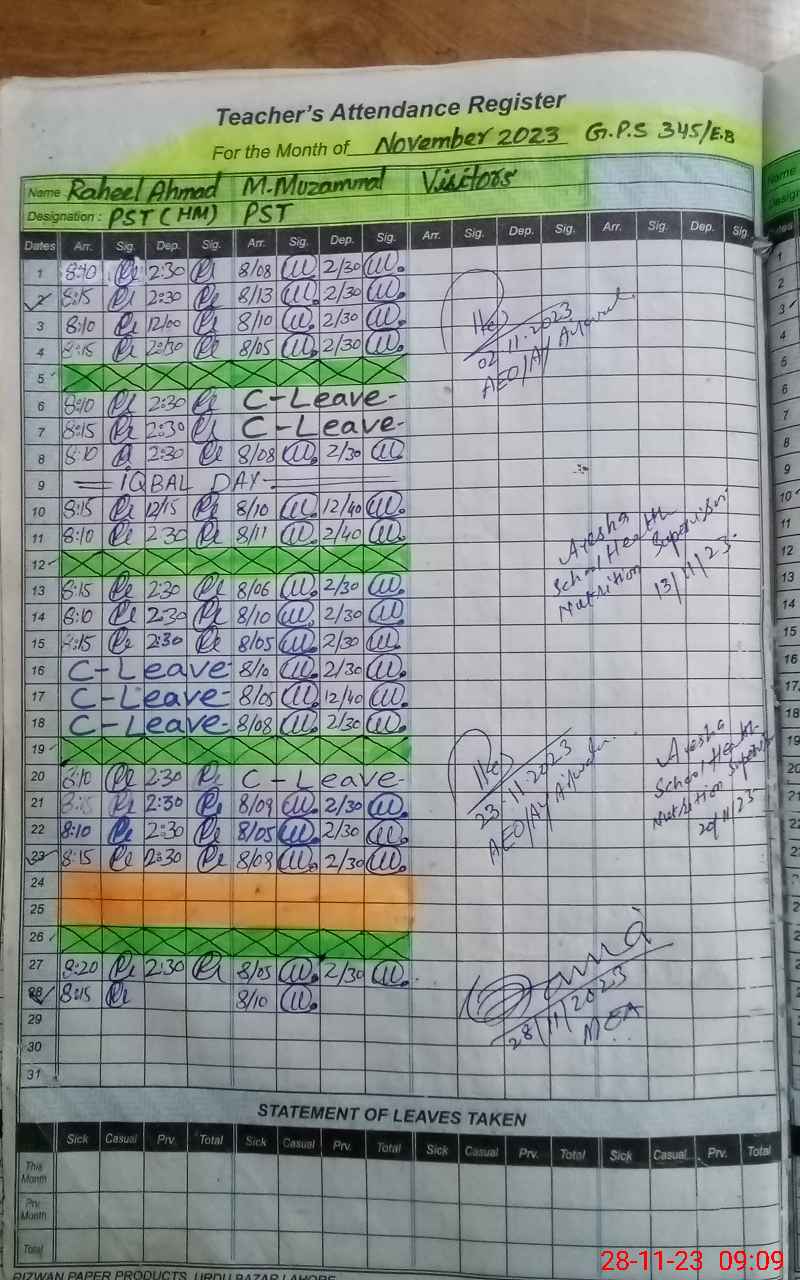 | Attendance Register | Head Teacher | MEA with School | Visit Proof |