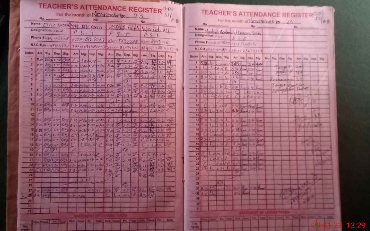 | Name: SH**** NA**** Designation: (School Headmaster's/Headmistress's) PST Phone/Cell Number: 03**** |