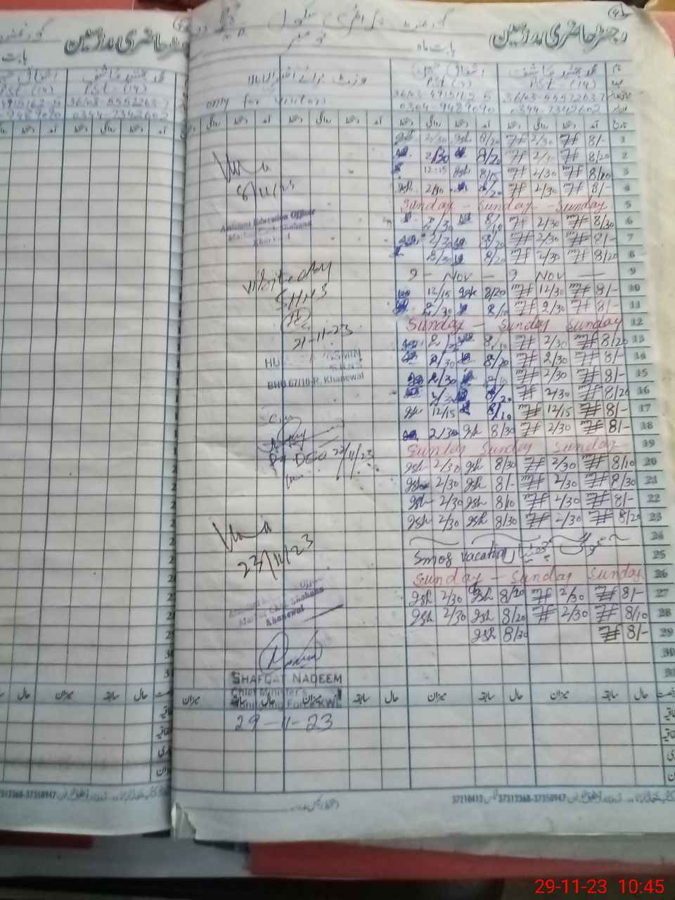 | Monitoring Date: 29-11-2023 | Start Time: 29-11-2023 10:04 AM | End Time: 29-11-2023 11:06 AM | Name of MEA: Sh**** Na**** | |