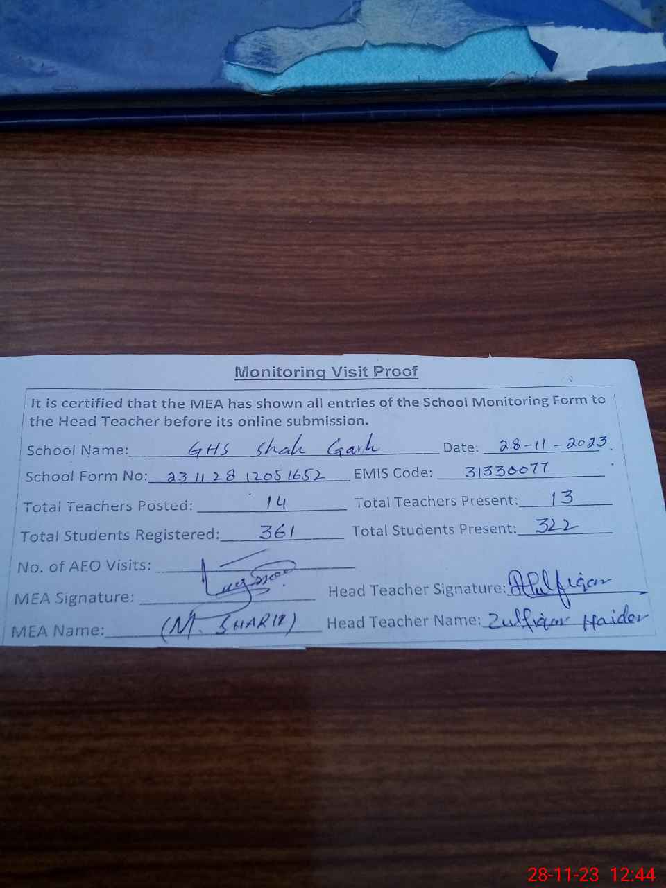 | EMIS Code: 31330077 | Name of School: GHS SHAH GARH | |||