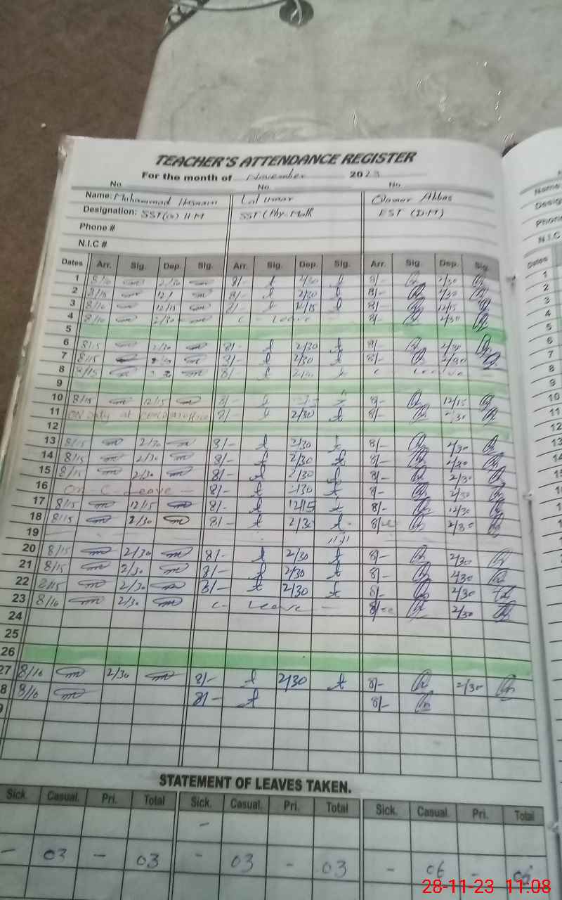 | CNIC | Full Name | Designation | R/C | Absence During Last Calender Month |