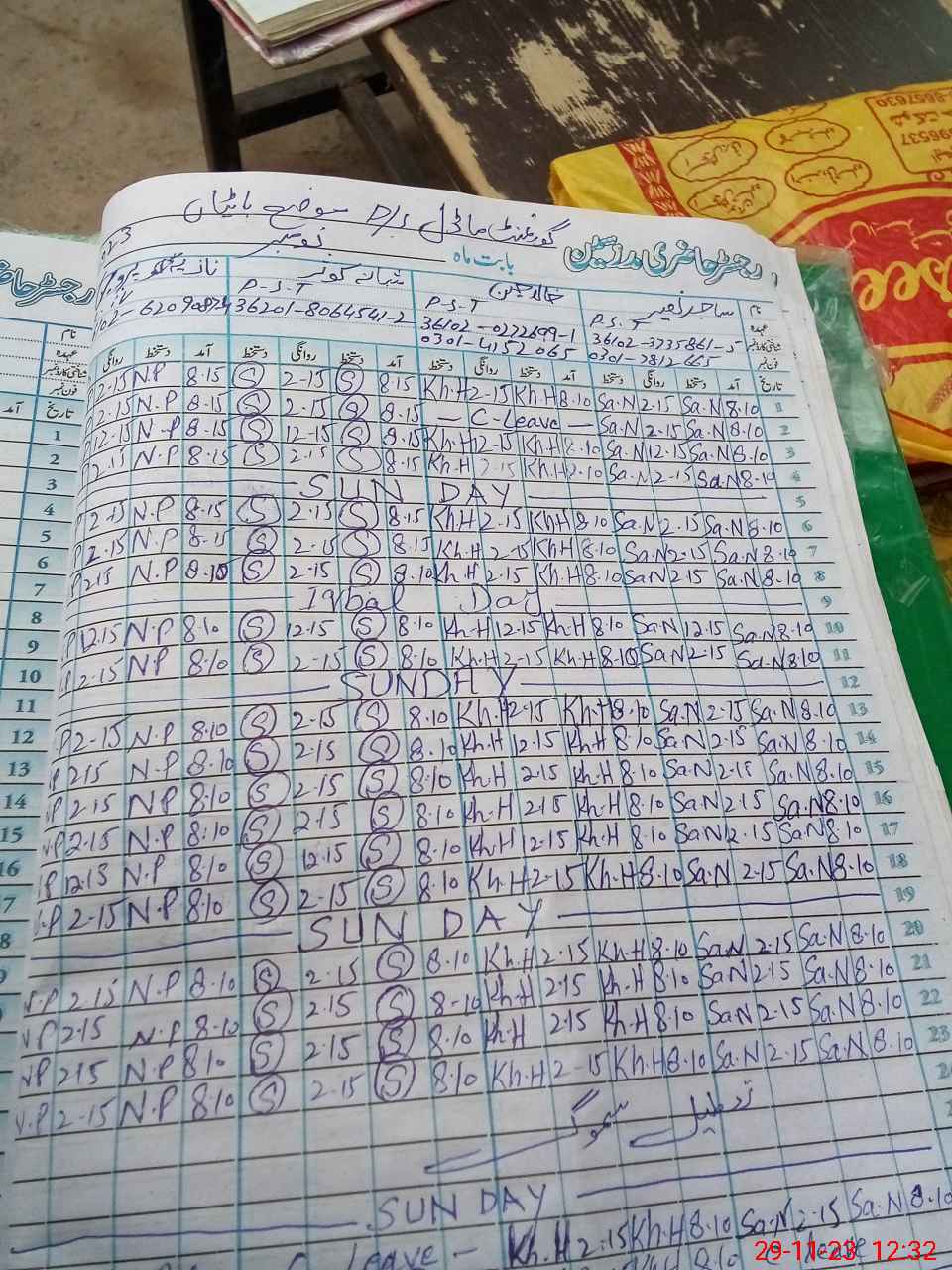 | CNIC | Full Name | Designation | R/C | Absence During Last Calender Month |