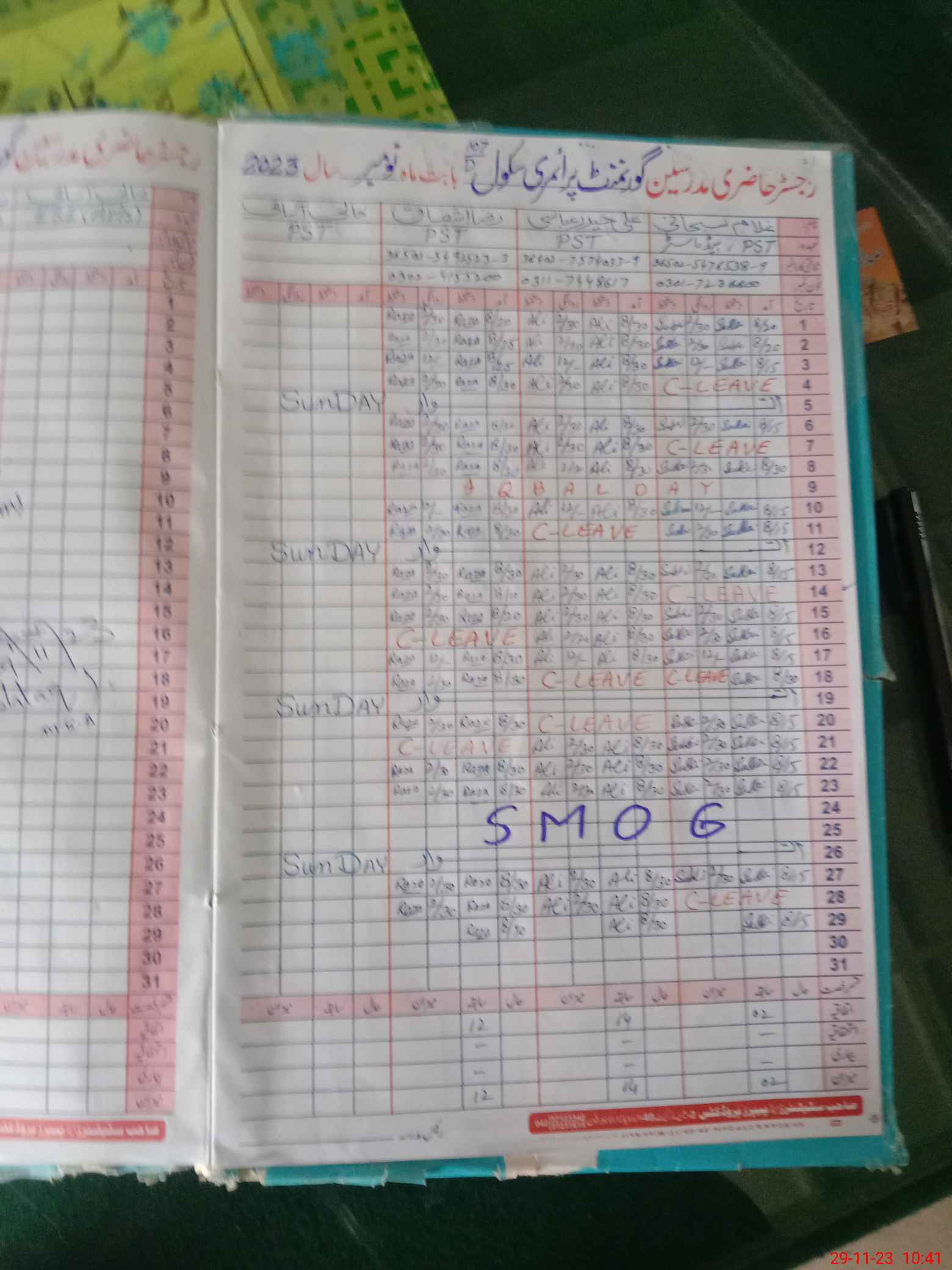 | CNIC | Full Name | Designation | R/C | Absence During Last Calender Month |