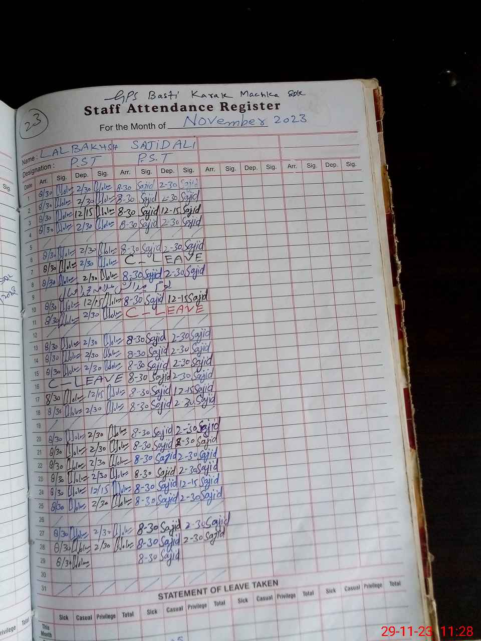 | Name: La**** Ba**** Designation: (School Headmaster's/Headmistress's) PST/PTC/JV Phone/Cell Number: 03**** |