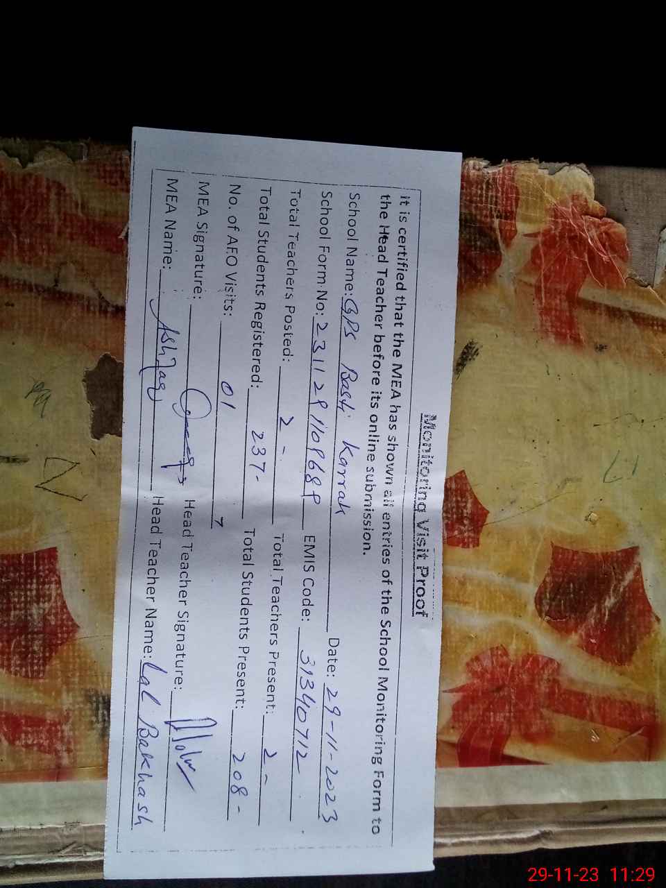 | EMIS Code: 31340712 | Name of School: GPS BASTI KARAK | |||