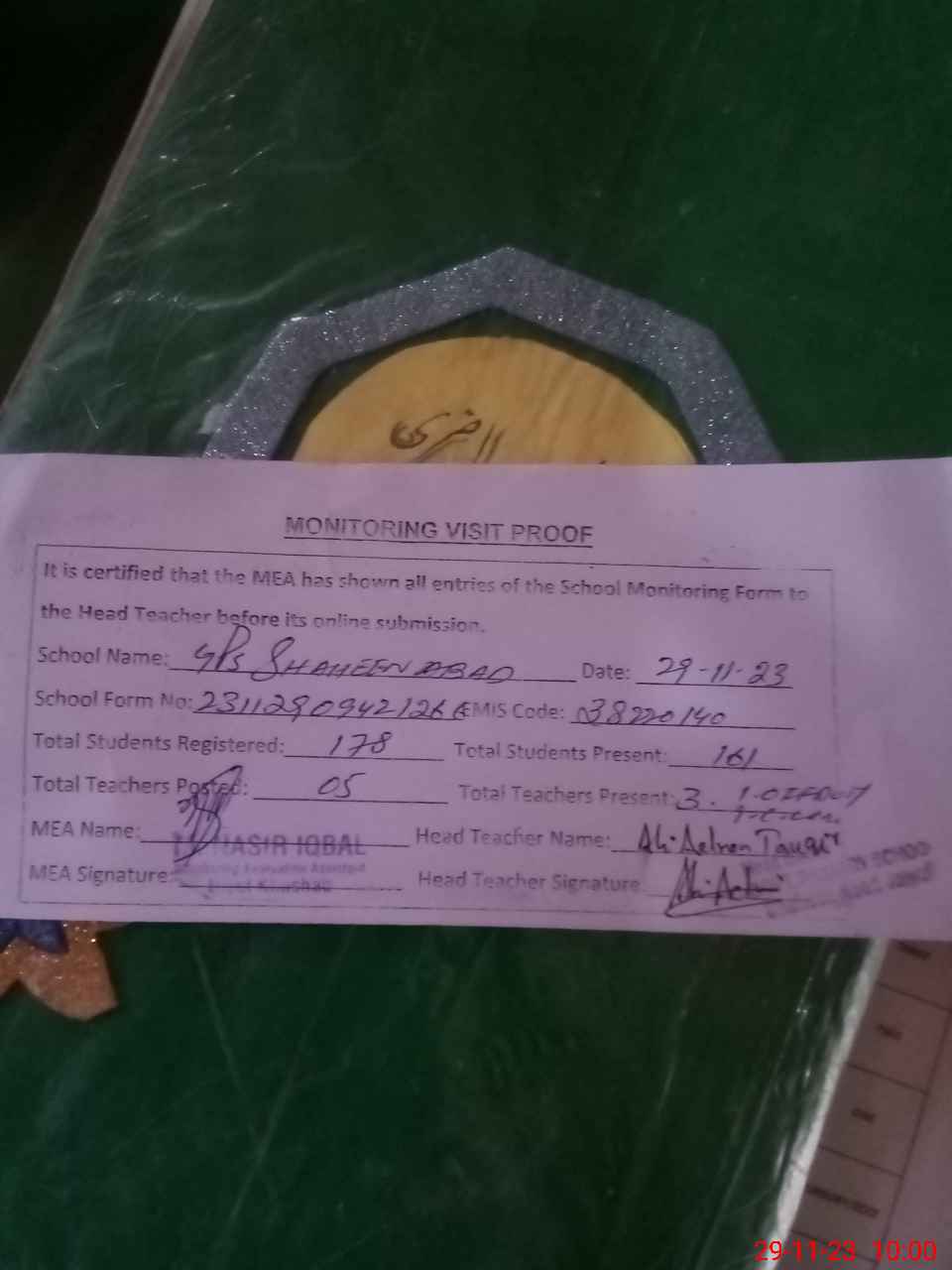 | EMIS Code: 38220140 | Name of School: GPS SHAHEEN ABAD | |||
