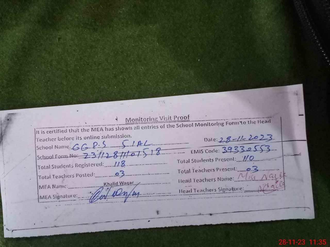 | Name: Sh**** Ki**** Designation: (School Headmaster's/Headmistress's) PST Phone/Cell Number: 03**** |