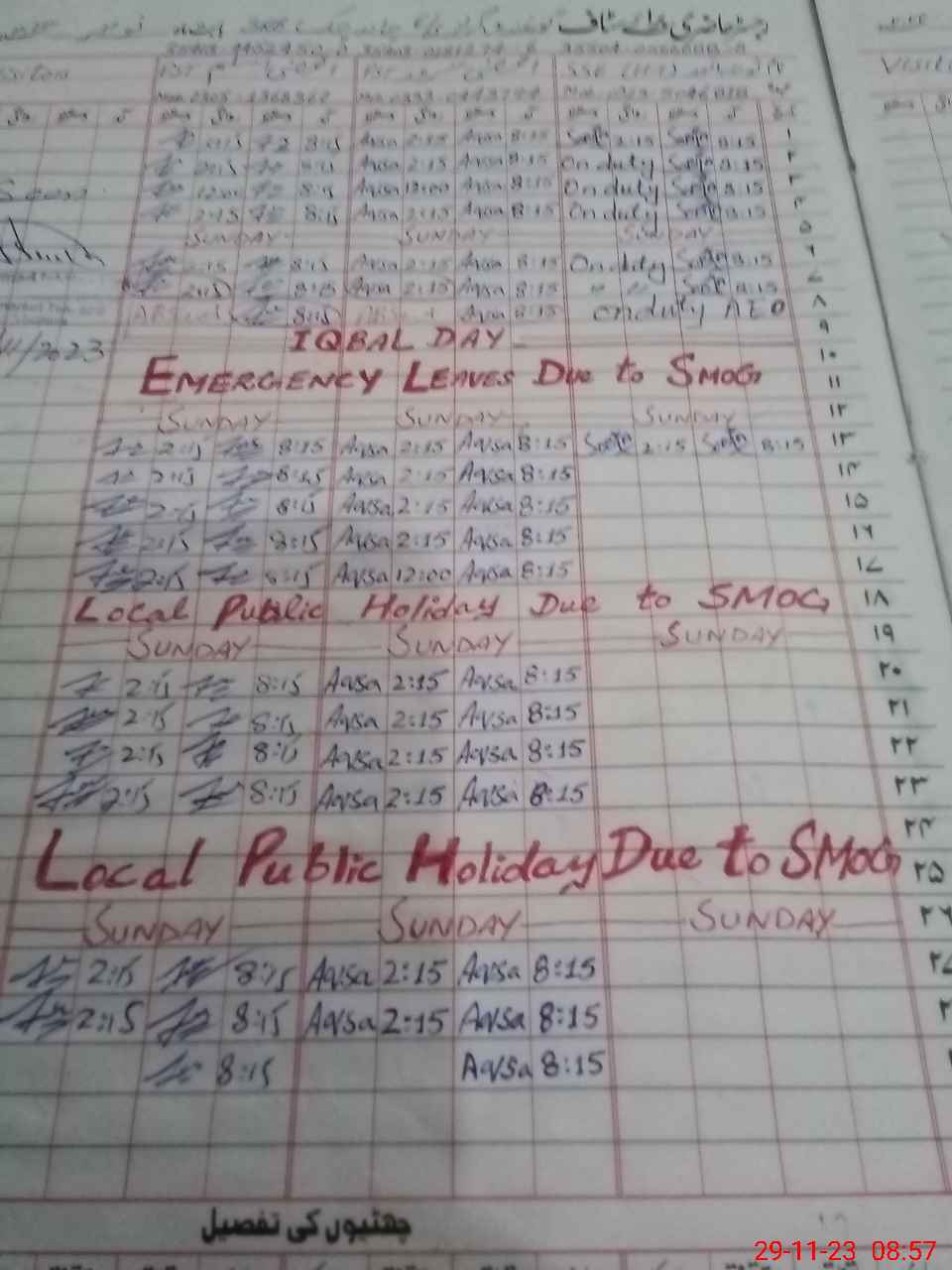 | Monitoring Date: 29-11-2023 | Start Time: 29-11-2023 08:52 AM | End Time: 29-11-2023 10:11 AM | Name of MEA: YO**** AL**** SH**** | |