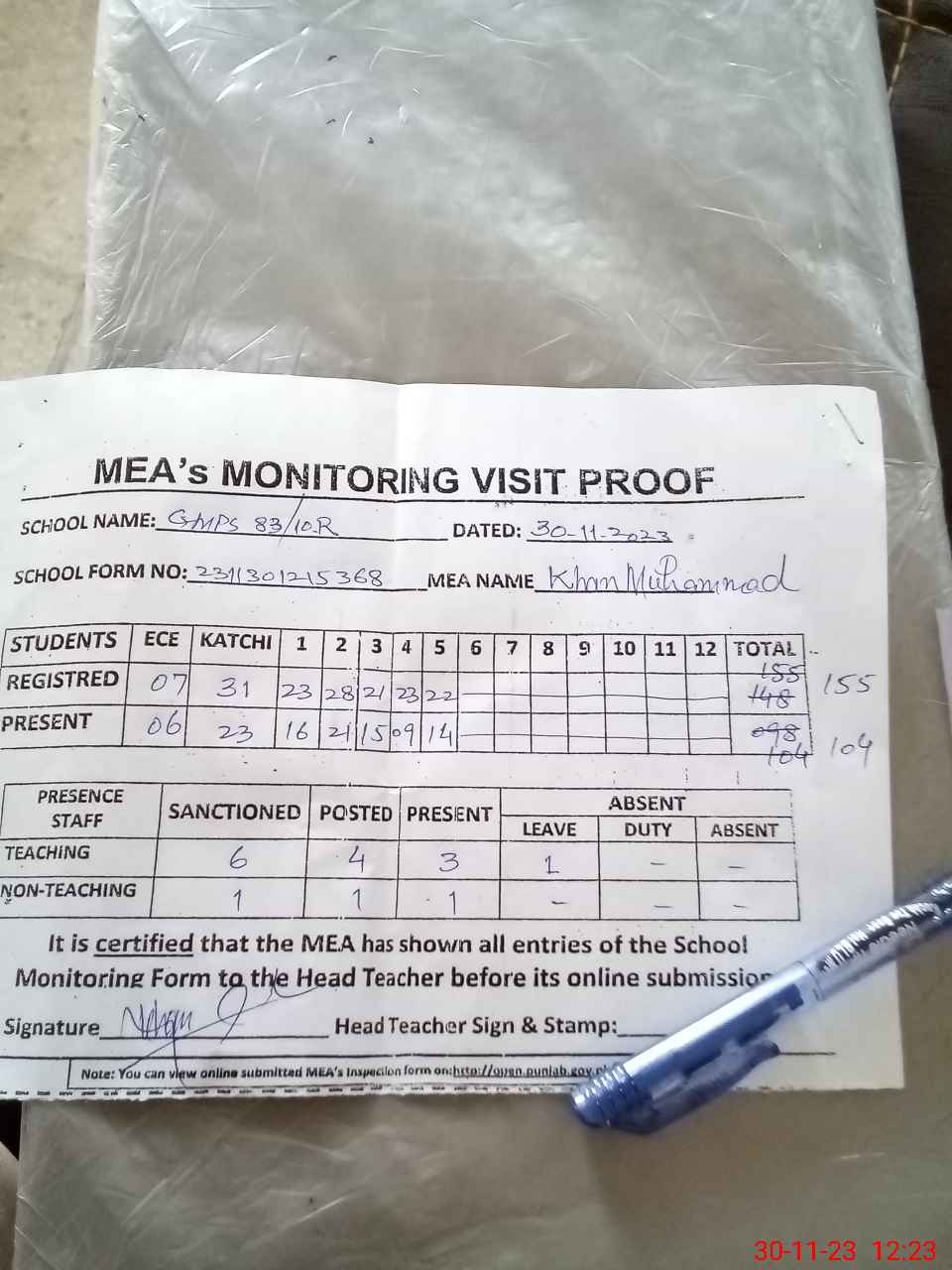 | EMIS Code: 36420427 | Name of School: GGPS 83/10-R, KHANEWAL | |||