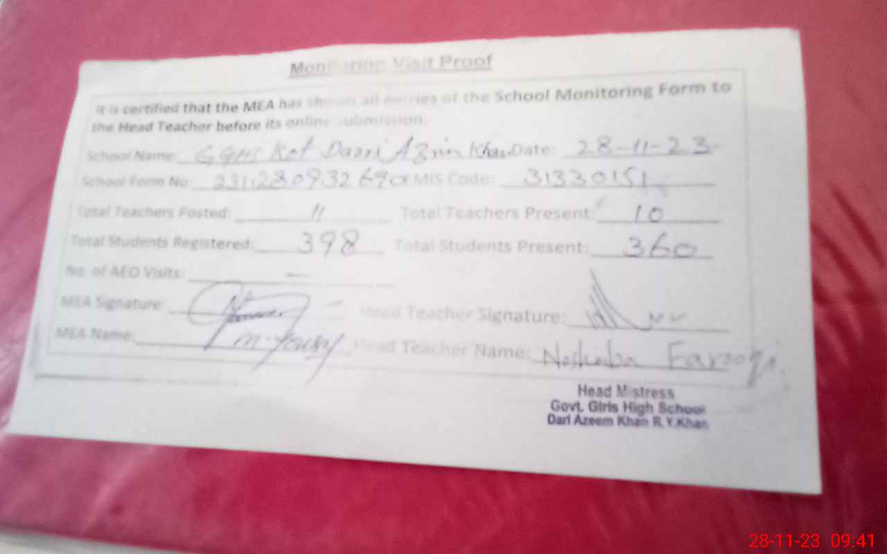 | EMIS Code: 31330151 | Name of School: GGHS KOT DARRI AZEEM KHAN | |||