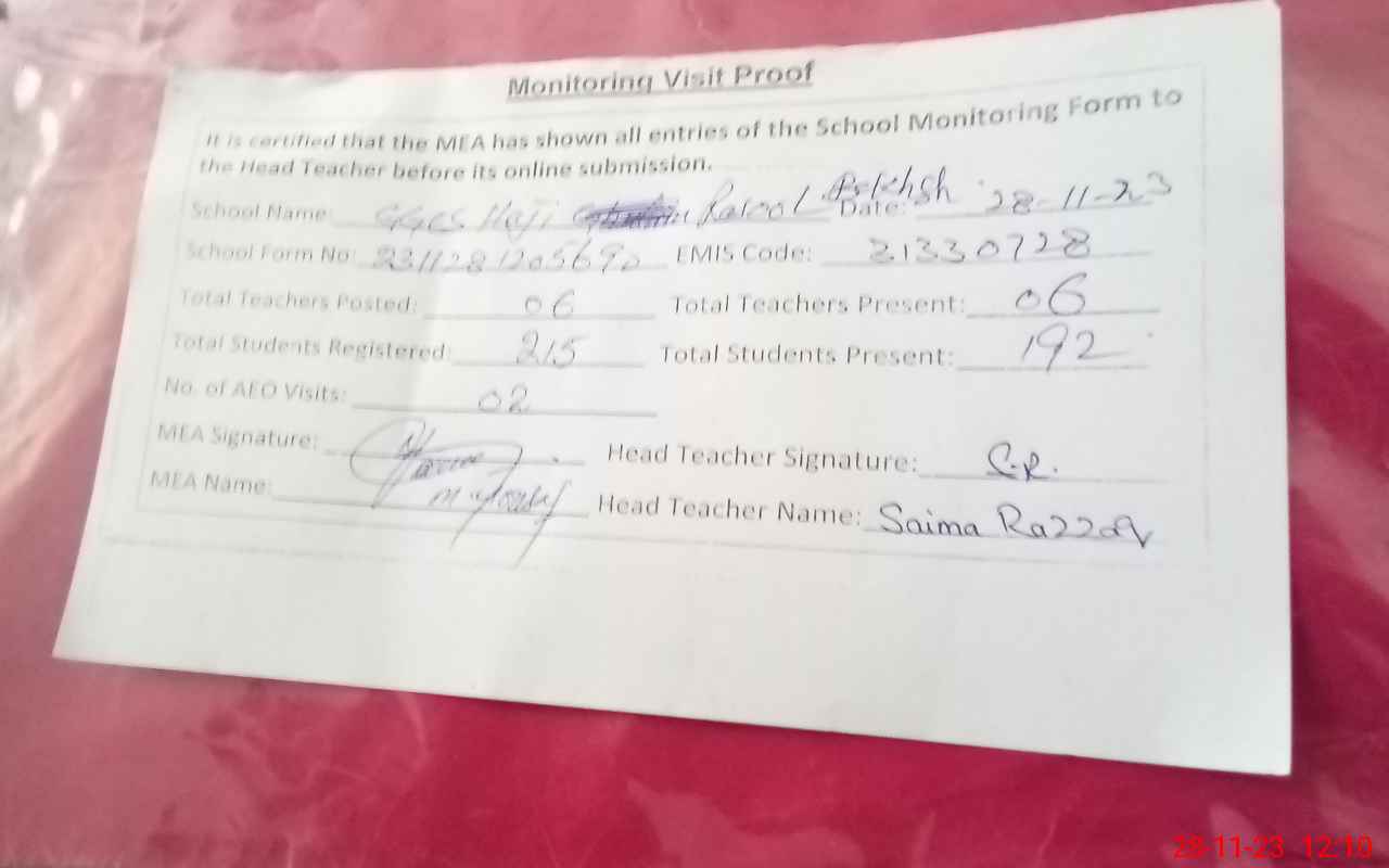| EMIS Code: 31330728 | Name of School: GGES HAJI RASOOL BAKHSH | |||