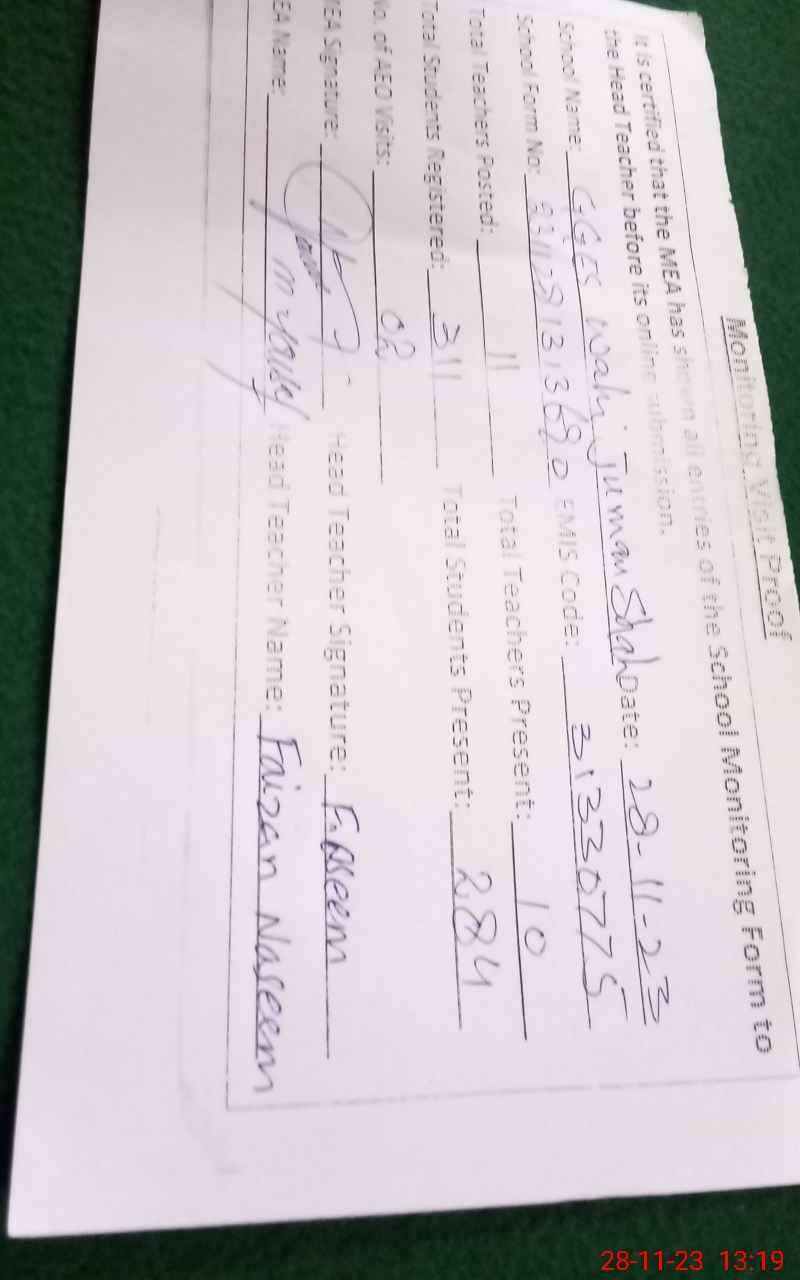 | EMIS Code: 31330775 | Name of School: GGES WAHI JUMAN SHAH | |||