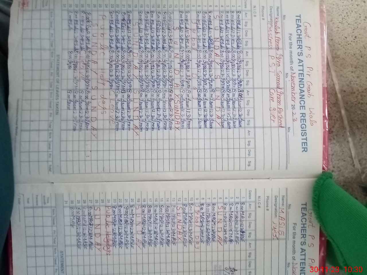 | Name: KH**** PE**** Designation: (School Headmaster's/Headmistress's) PST/PTC/JV Phone/Cell Number: 03**** |