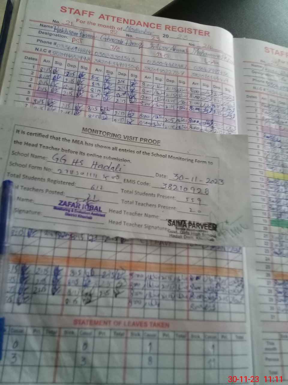| Attendance Register | Head Teacher | MEA with School | Visit Proof |
