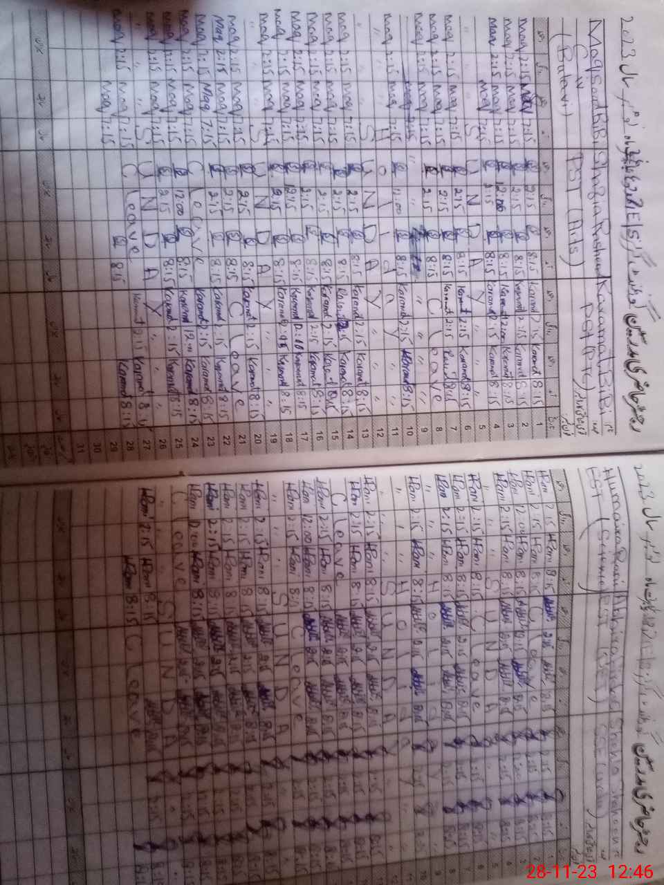 | Leave | Duty | Absent | Maternity | Medical | Ex- Pak |