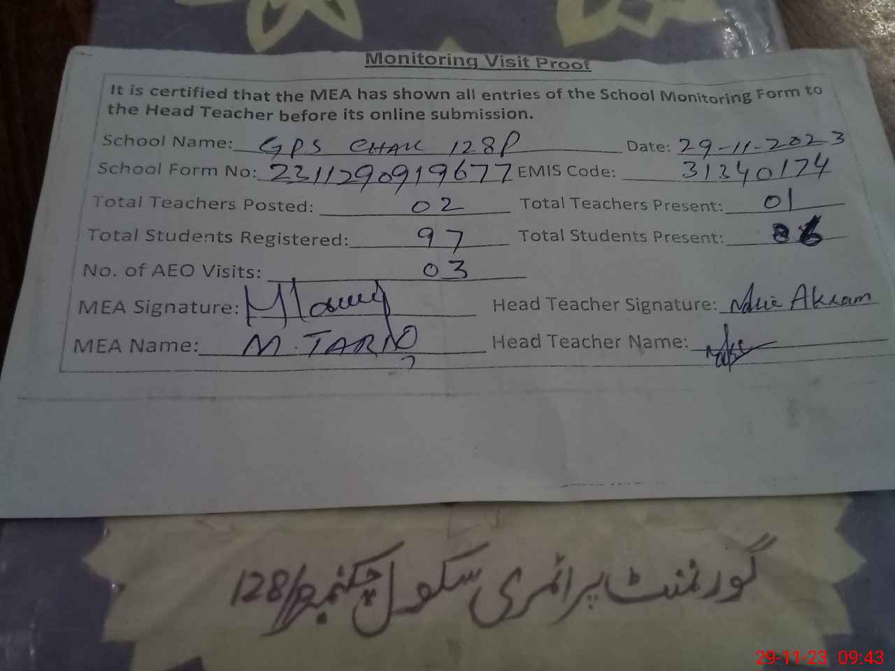| EMIS Code: 31340174 | Name of School: GPS CHAK NO 128/P | |||