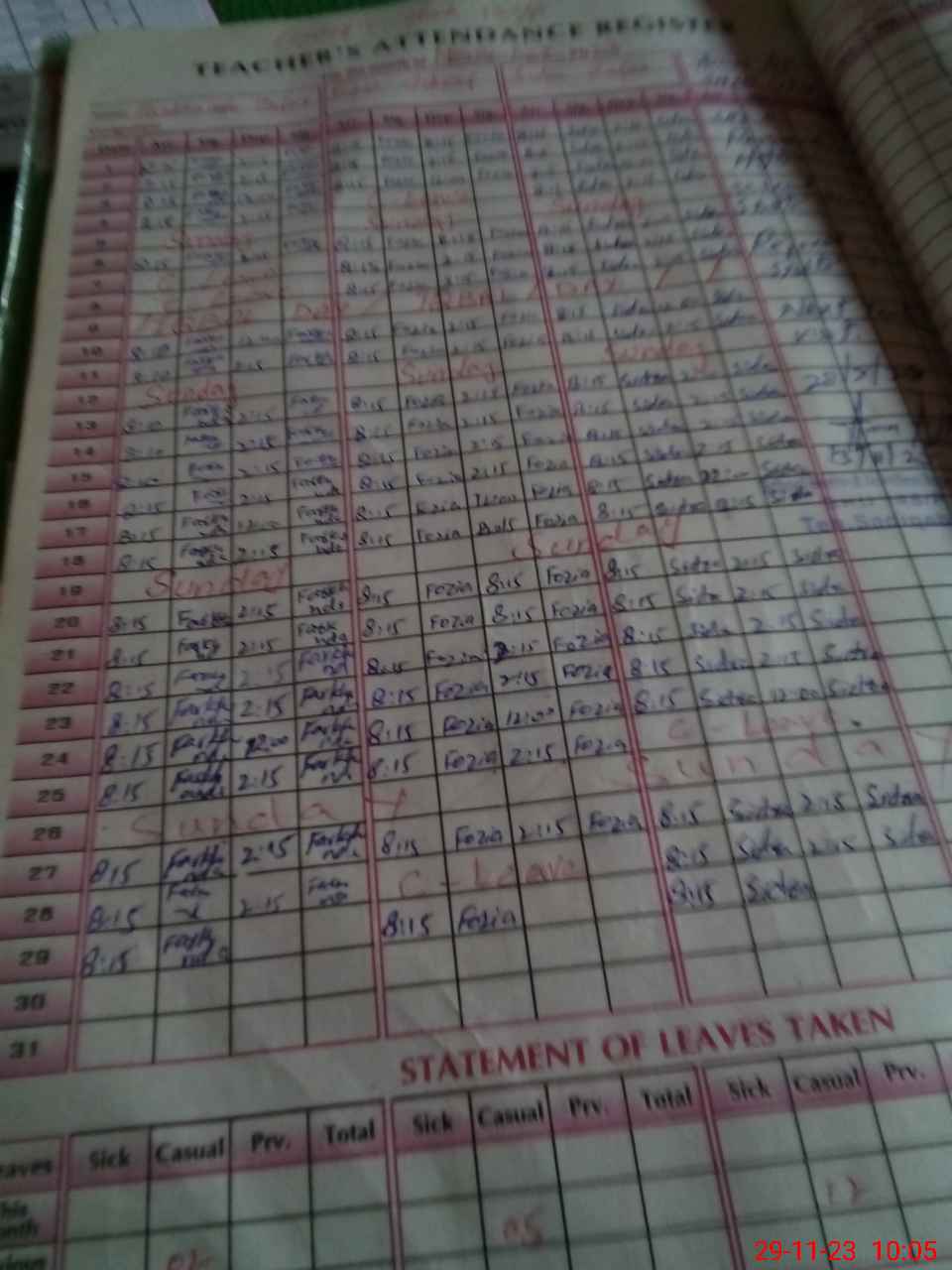 | Leave | Duty | Absent | Maternity | Medical | Ex- Pak |