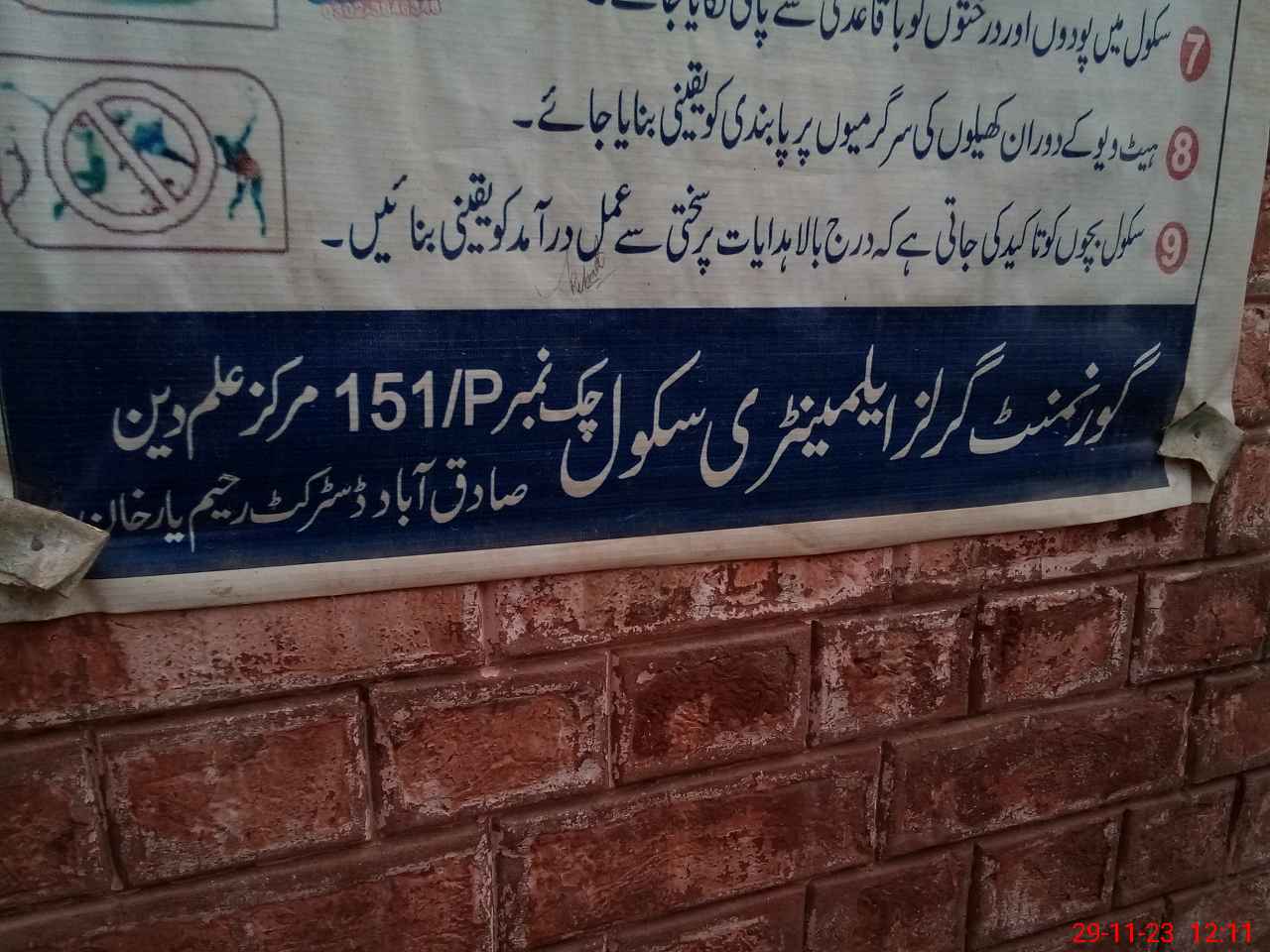 | District: RAHIMYAR KHAN | Tehsil: SADIQABAD | Markaz: ILLAM DIN -FEMALE | Level: Middle | |