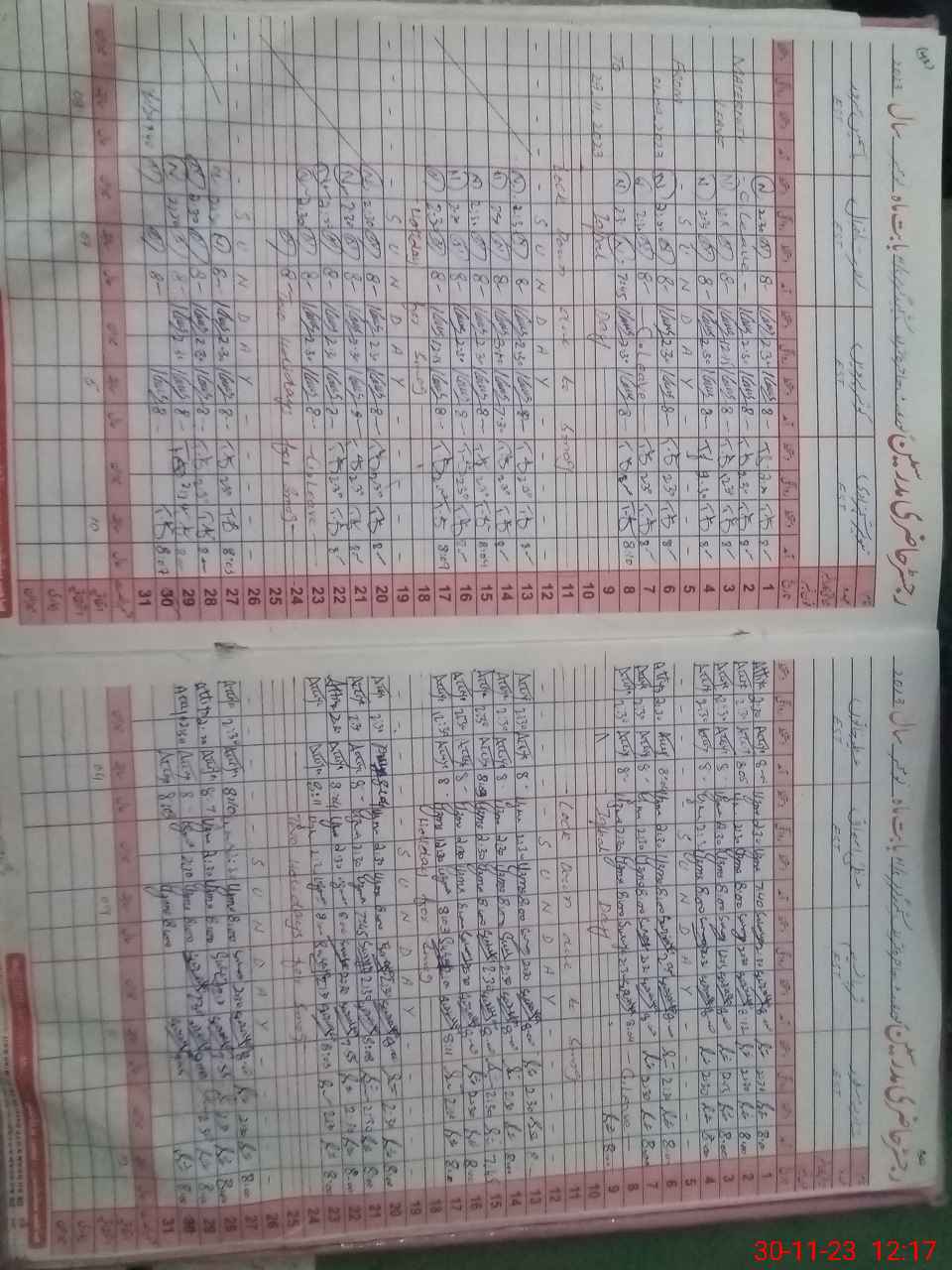 | CNIC | Full Name | Designation | R/C | Absence During Last Calender Month |