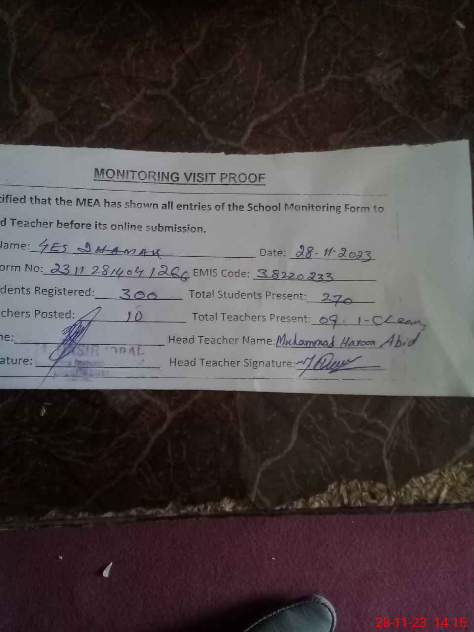 | Certified that this School was Inspected by the Undersigned MEA/DMO Today and the Information Stated Above is as Per Record. | |||||