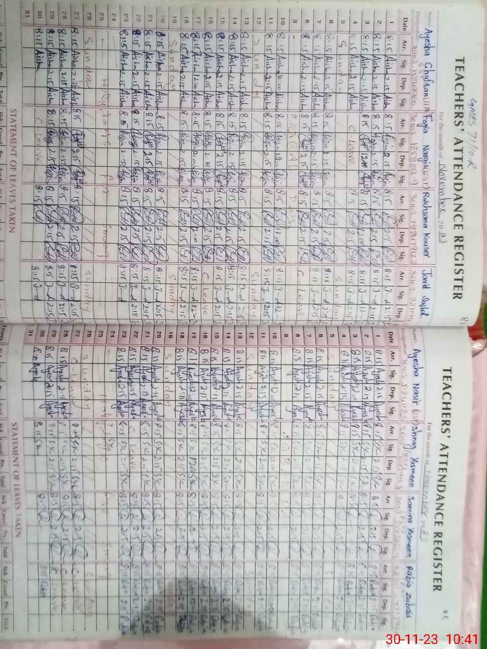 | CNIC | Full Name | Designation | R/C | Absence During Last Calender Month |