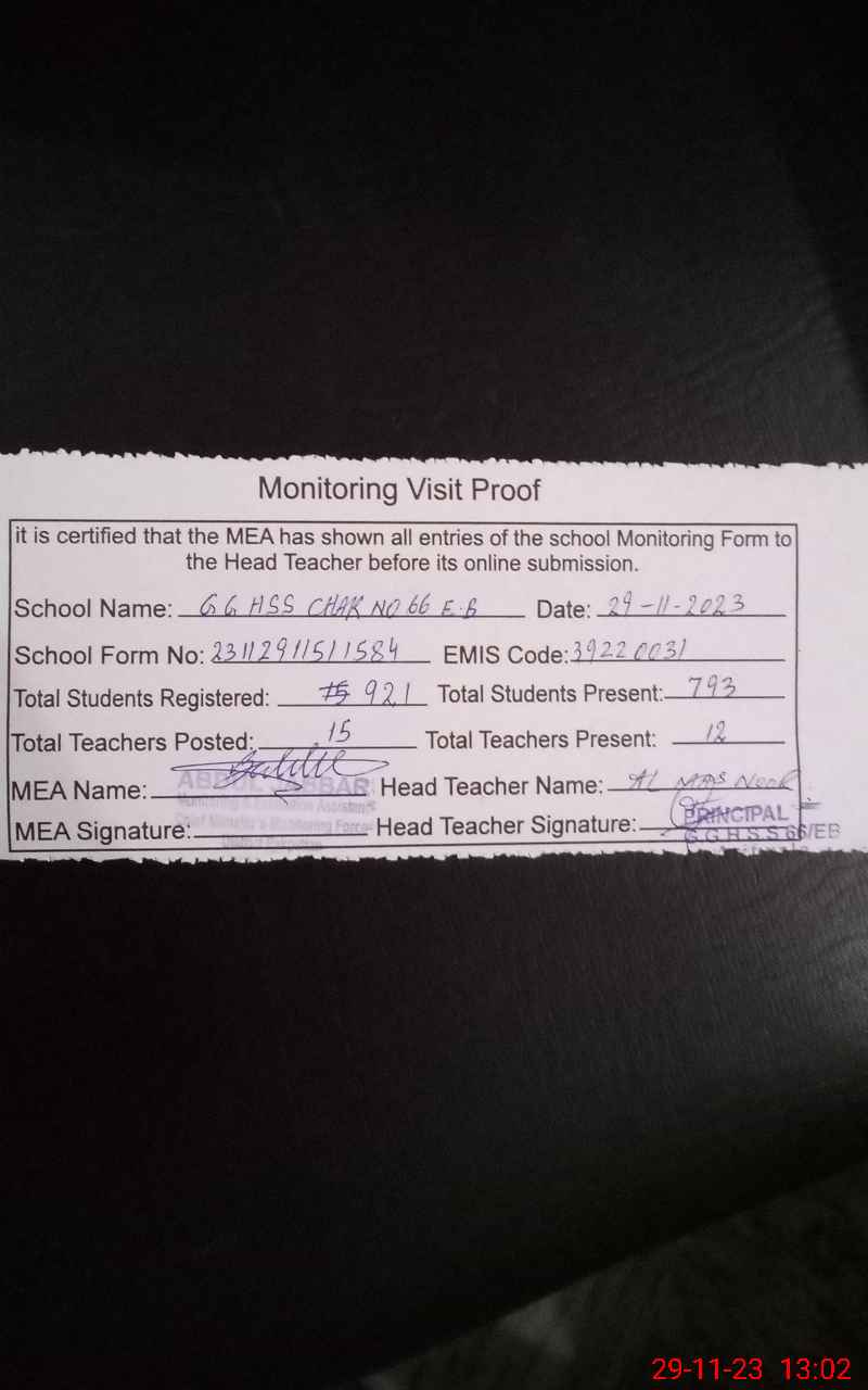 | EMIS Code: 39220031 | Name of School: GGHSS CHAK NO.66 EB | |||