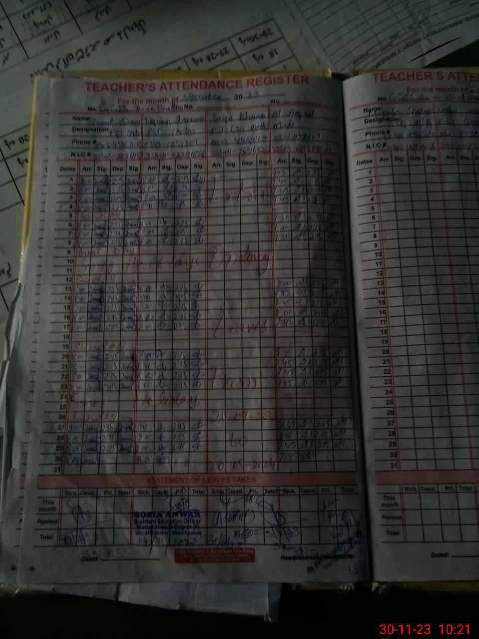 | CNIC | Full Name | Designation | R/C | Absence During Last Calender Month |