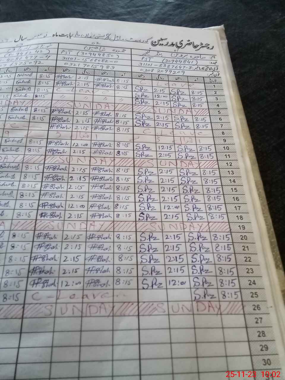 | CNIC | Full Name | Designation | R/C | Absence During Last Calender Month |
