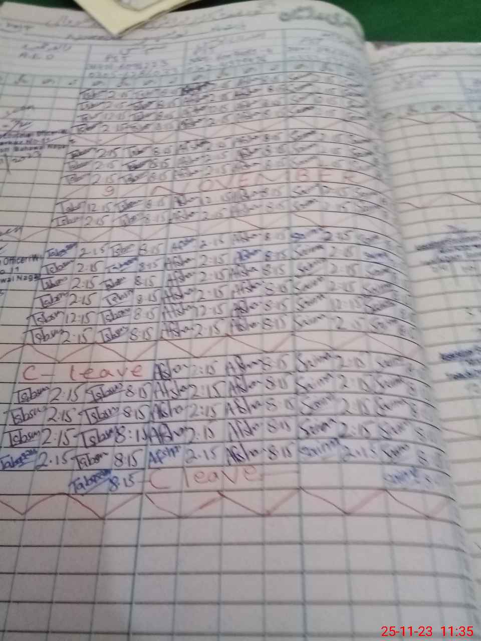 | Leave | Duty | Absent | Maternity | Medical | Ex- Pak |