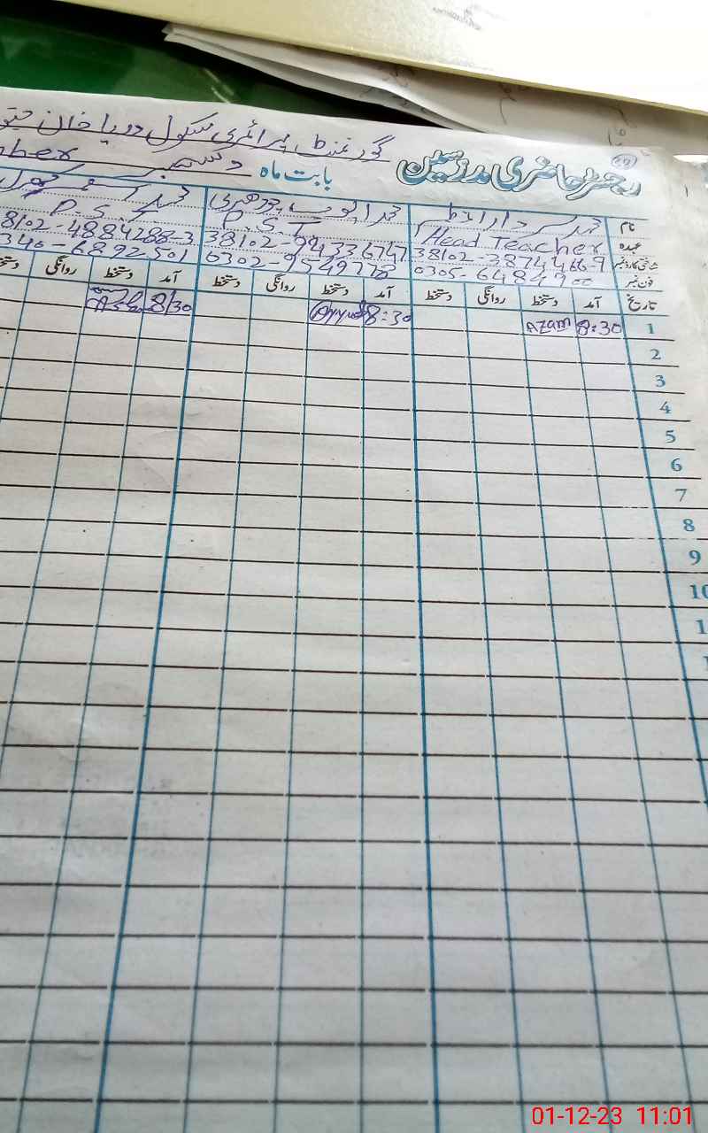 | Name: MU**** SA**** AZ**** Designation: (School Headmaster's/Headmistress's) PST HM Phone/Cell Number: 03**** |