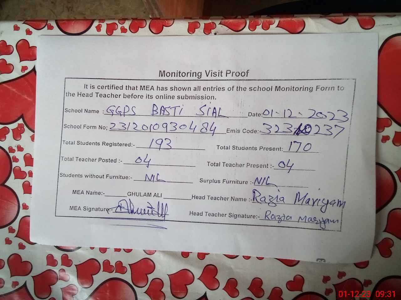 | EMIS Code: 32310237 | Name of School: GGPS BASTI SIAL | |||