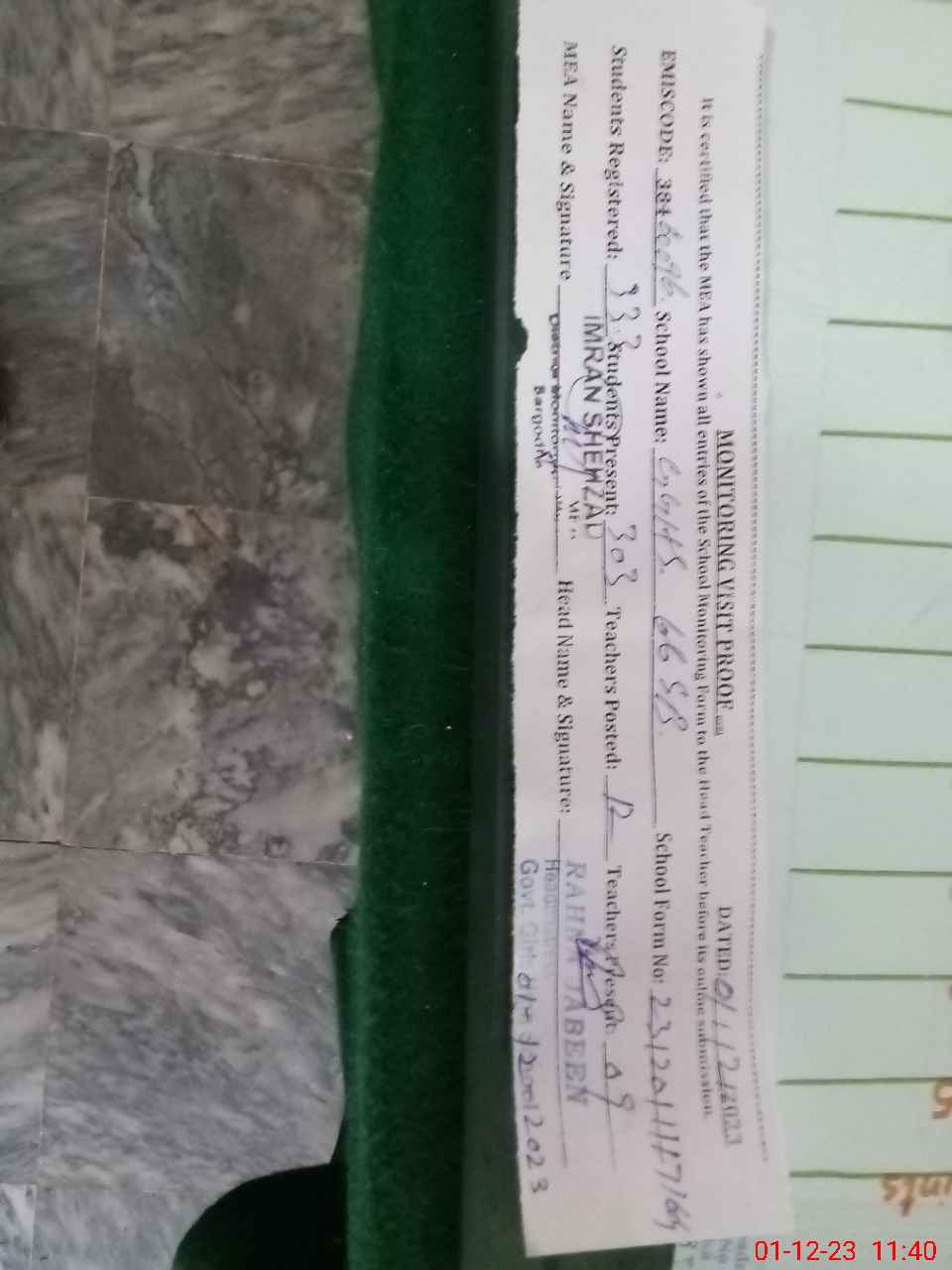 | Certified that this School was Inspected by the Undersigned MEA/DMO Today and the Information Stated Above is as Per Record. | |||||