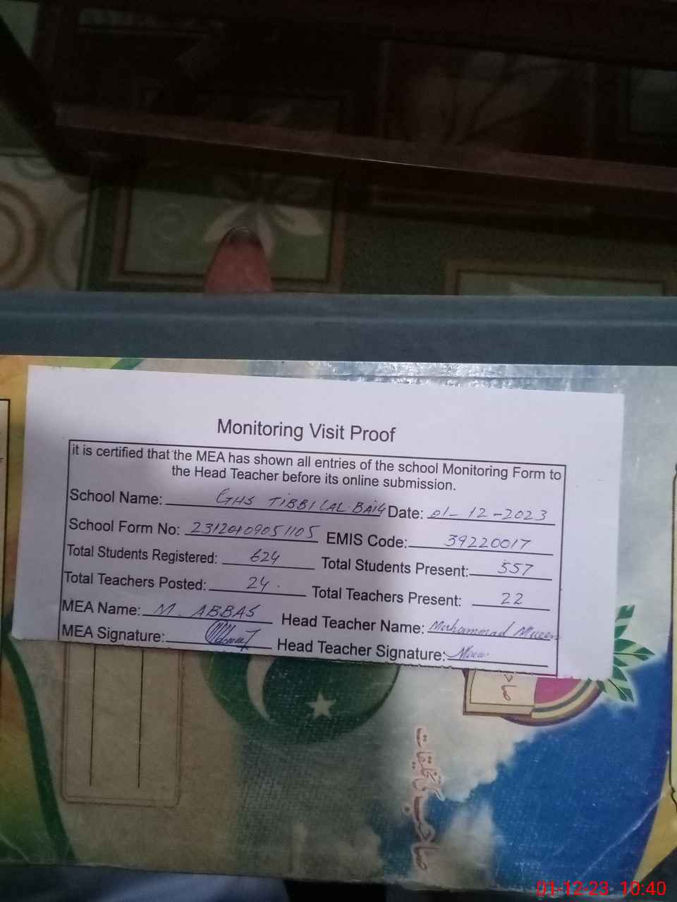 | EMIS Code: 39220017 | Name of School: GHS TIBBI LAL BAIG | |||
