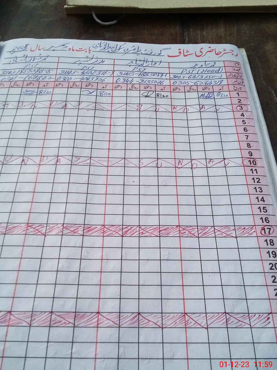 | Name: Mu**** Ja**** Designation: (School Headmaster's/Headmistress's) PST Phone/Cell Number: 03**** |