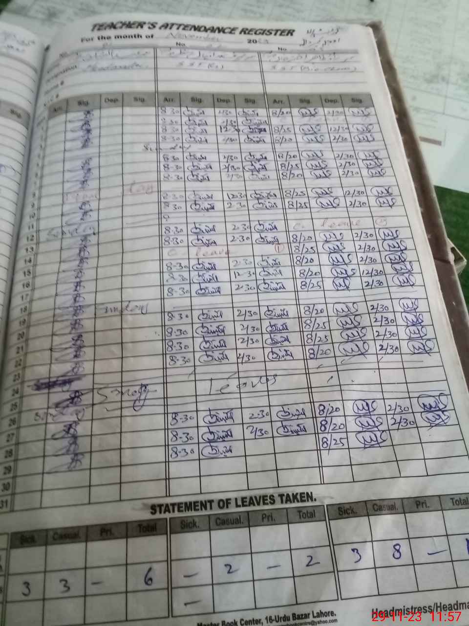 | Leave | Duty | Absent | Maternity | Medical | Ex- Pak |