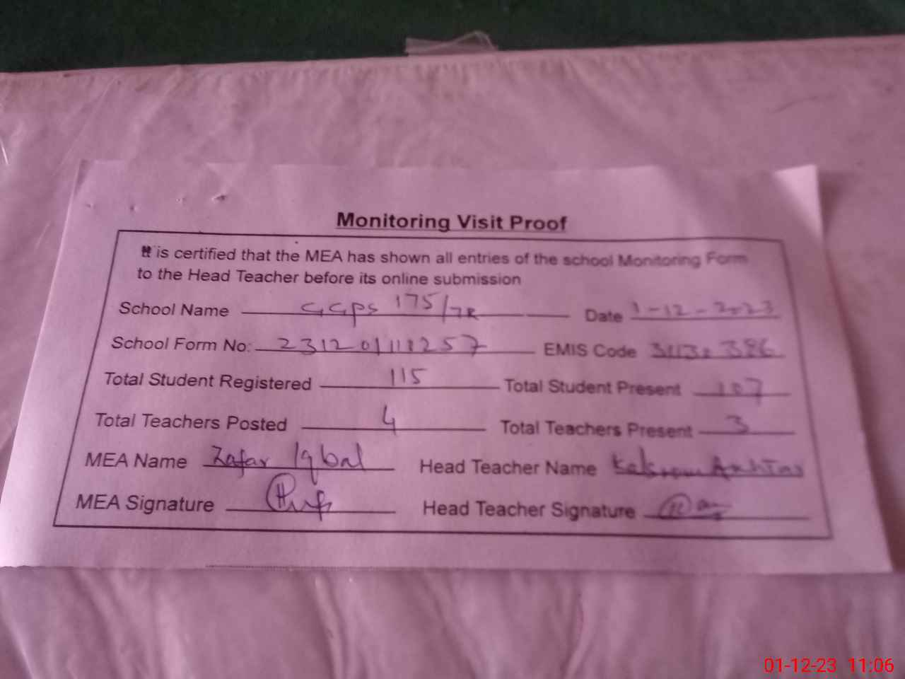 | EMIS Code: 31130386 | Name of School: GGPS CHAK NO 175/7-R | |||