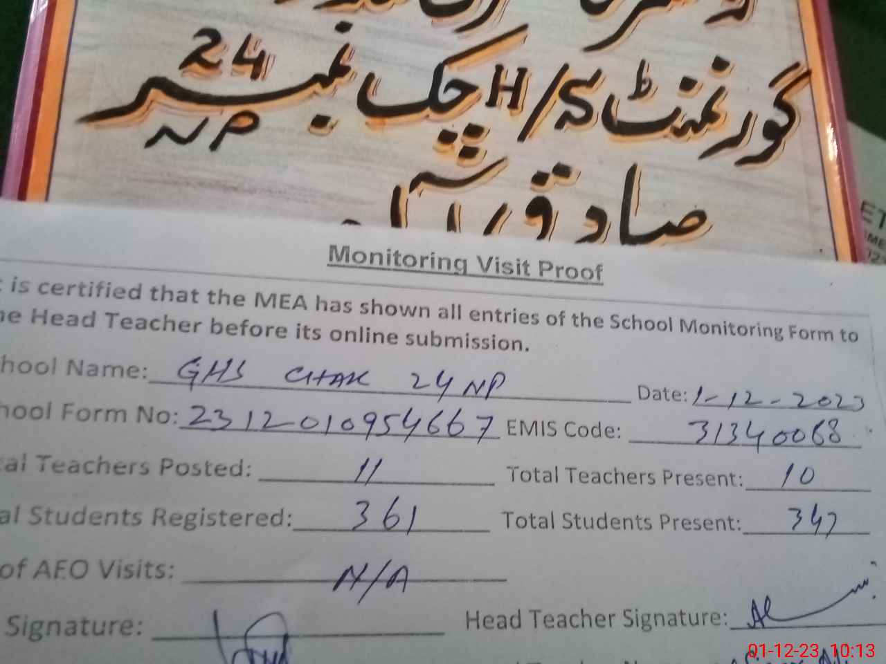 | EMIS Code: 31340068 | Name of School: GHS CHAK NO. 24 NP | |||