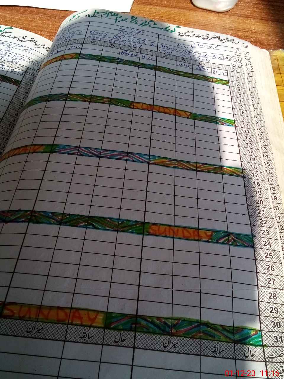 | CNIC | Full Name | Designation | R/C | Absence During Last Calender Month |