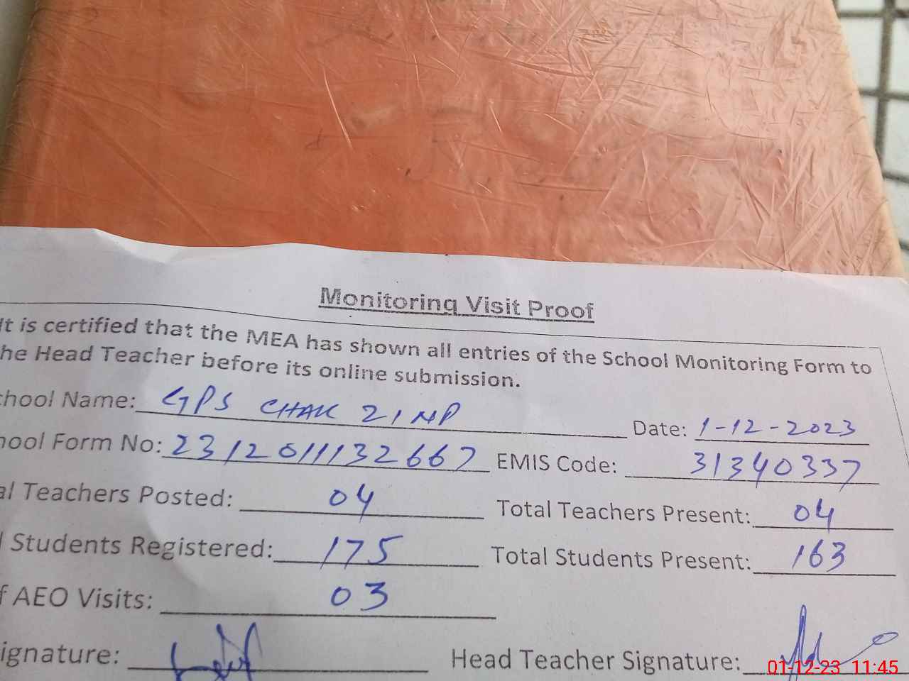 | EMIS Code: 31340337 | Name of School: GPS CHAK NO 21/NP | |||
