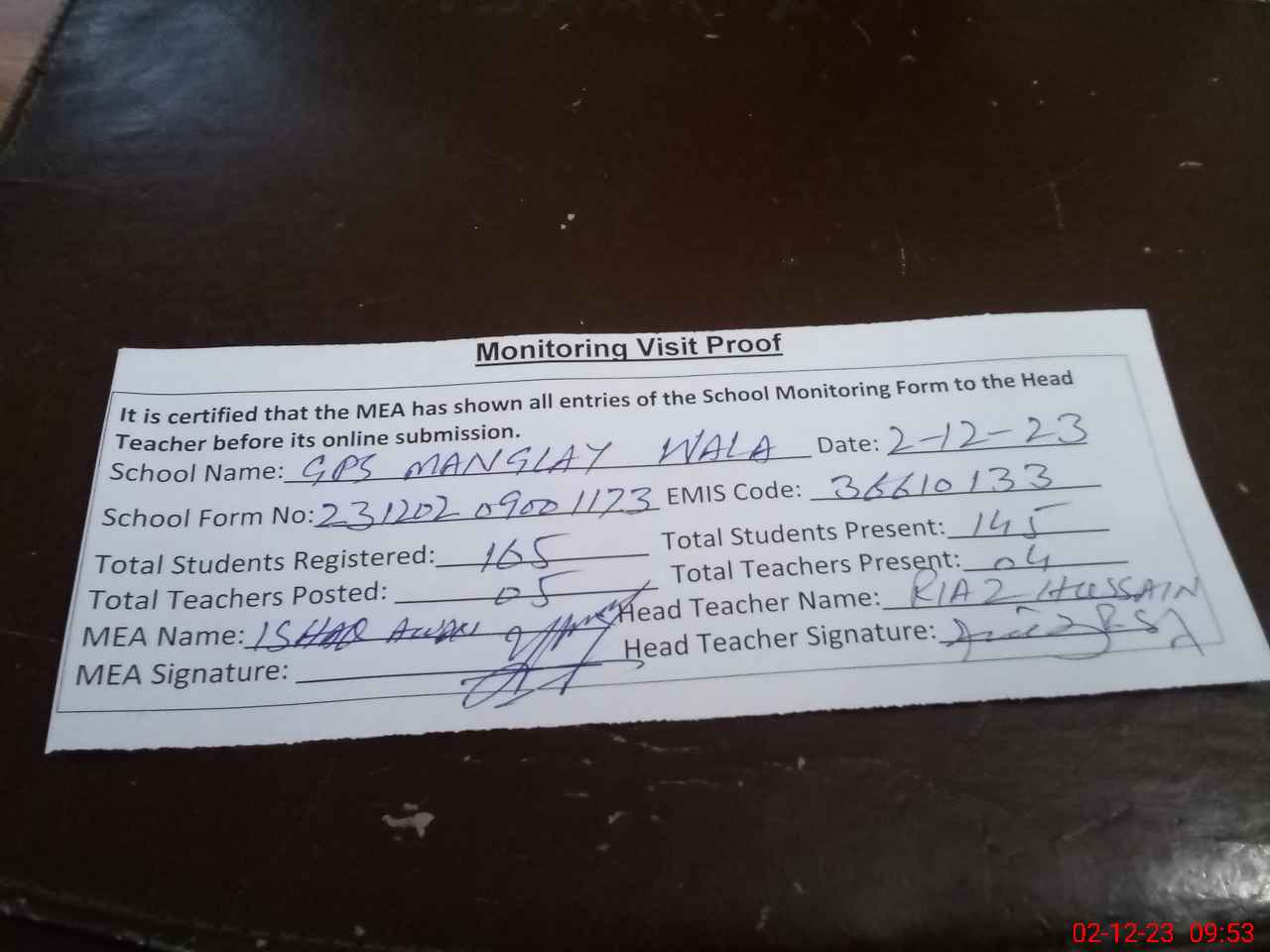 | Monitoring Date: 02-12-2023 | Start Time: 02-12-2023 09:00 AM | End Time: 02-12-2023 09:53 AM | Name of MEA: Mu**** Is**** Aw**** | |