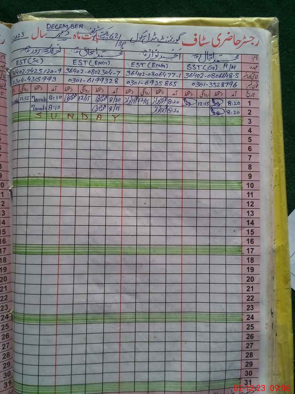 | Name: MU**** IQ**** Designation: (School Headmaster's/Headmistress's) S.S.T.(GENERAL) Phone/Cell Number: 03**** |