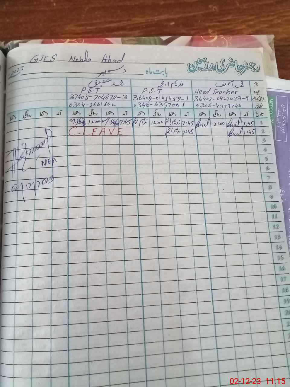 | Name: MAS**** Designation: (School Headmaster's/Headmistress's) PST Phone/Cell Number: 03**** |