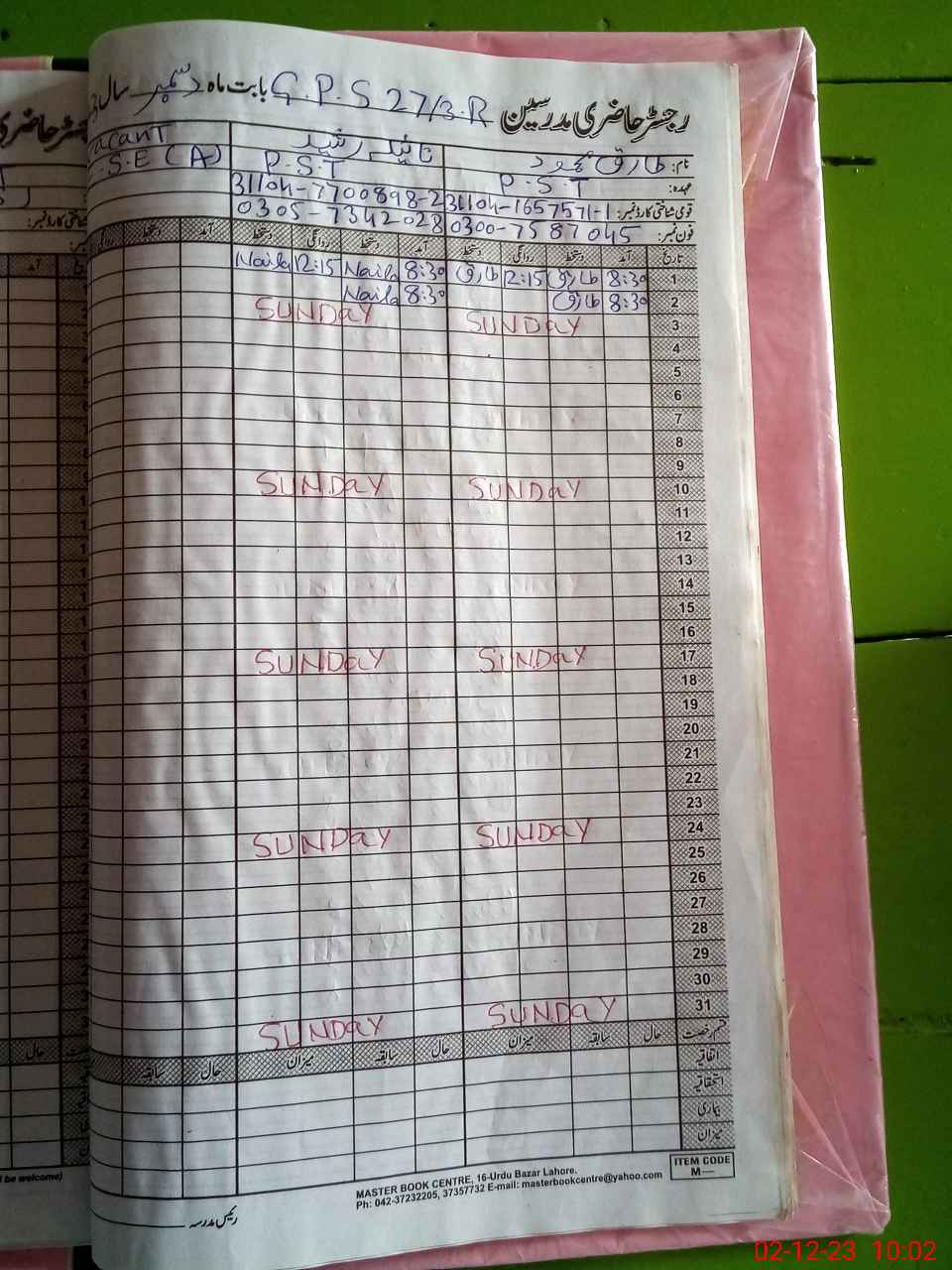 | CNIC | Full Name | Designation | R/C | Absence During Last Calender Month |
