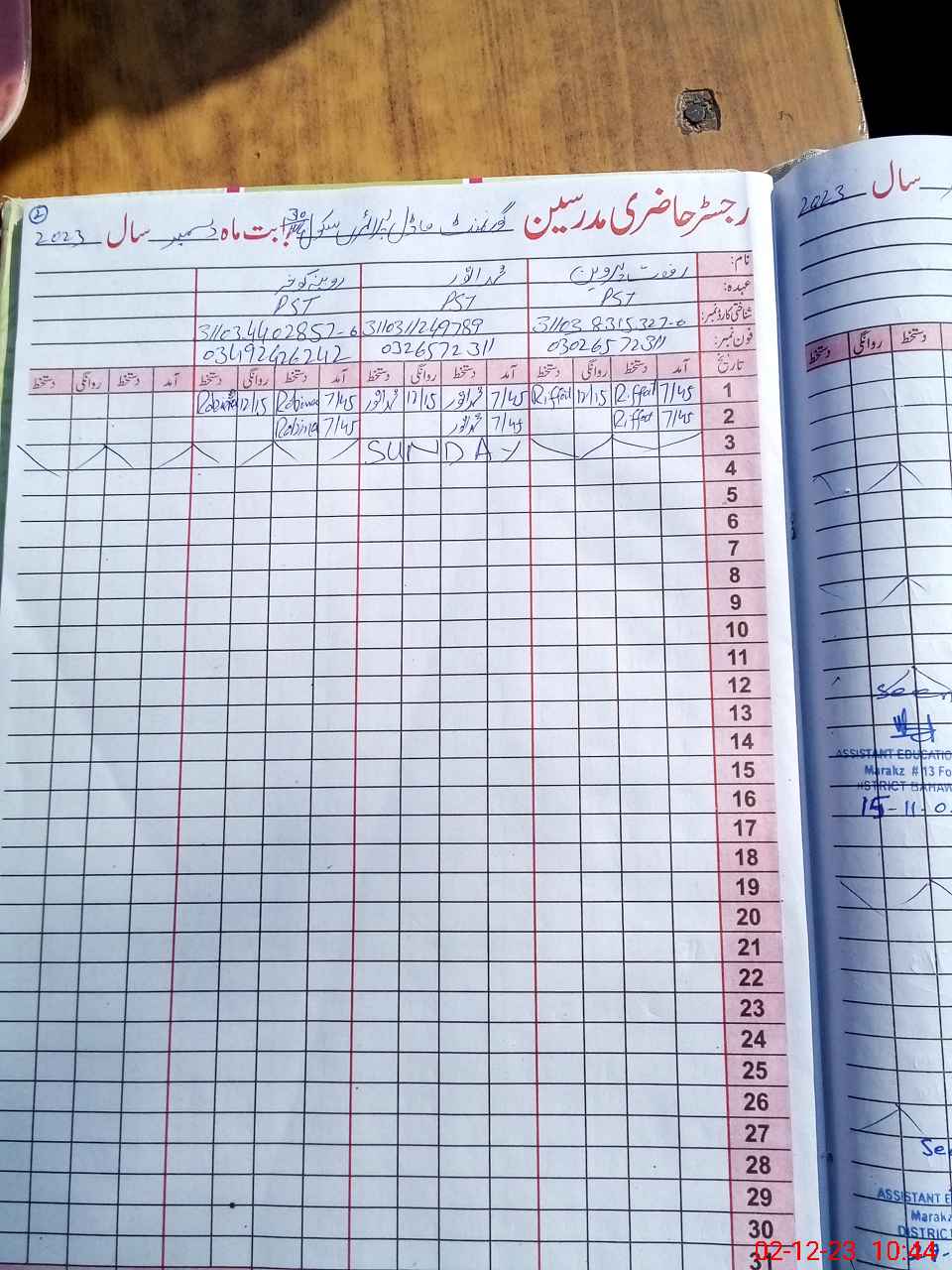 | Name: Ri**** Pe**** Designation: (School Headmaster's/Headmistress's) PST/PTC/JV Phone/Cell Number: 03**** |