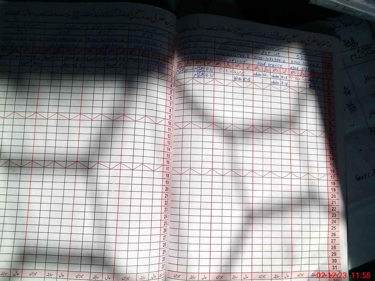 | CNIC | Full Name | Designation | R/C | Absence during last cal. month |