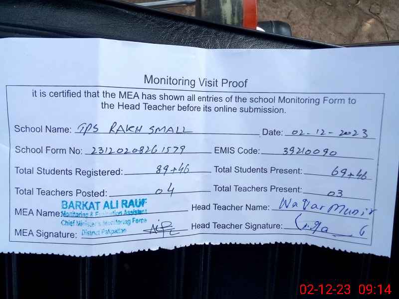 | EMIS Code: 39210090 | Name of School: GPS RAKH SMALL P/O 17/SP PAKPATTAN | |||