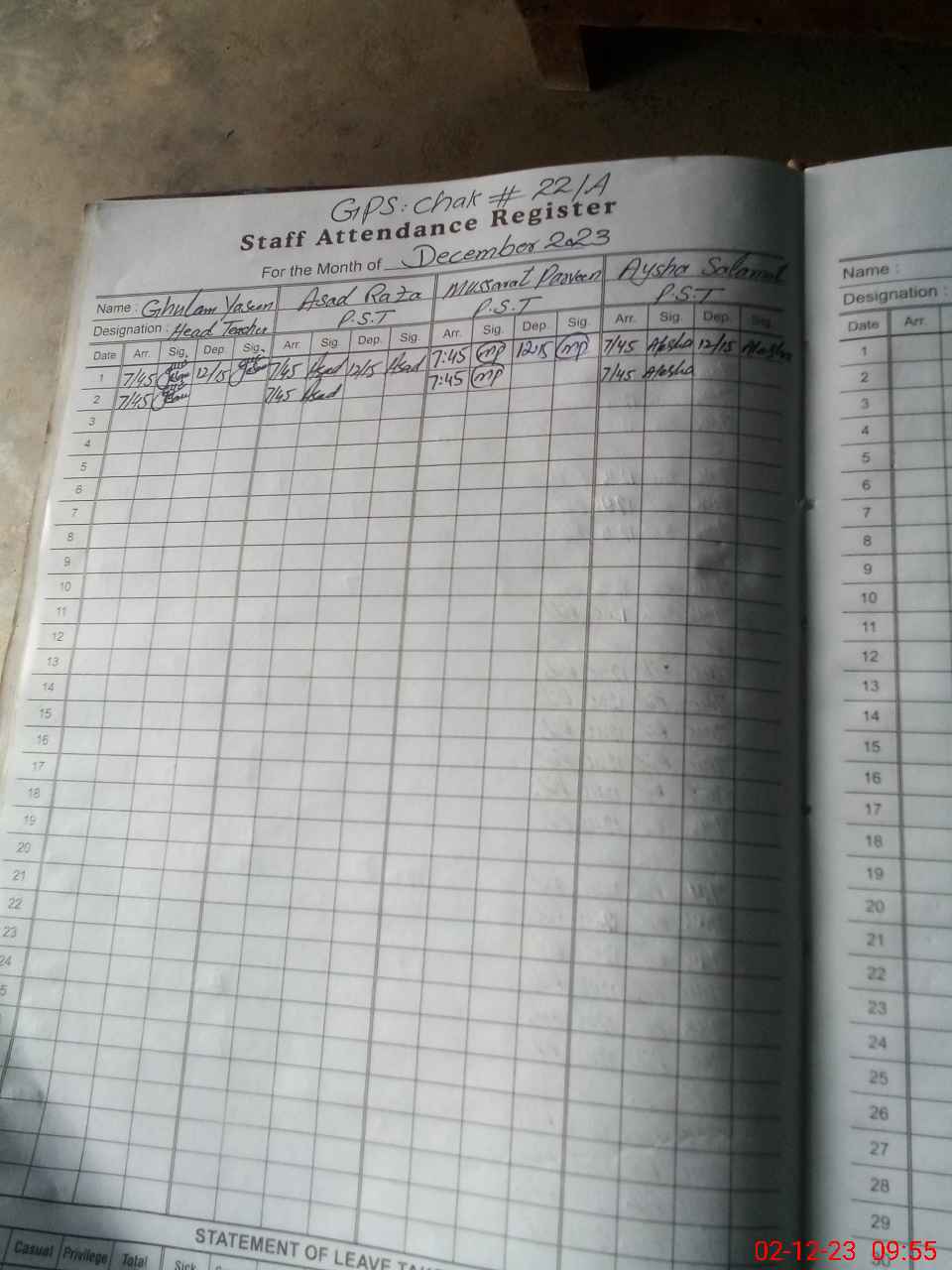 | Name: AS**** RA**** Designation: (School Headmaster's/Headmistress's) PST Phone/Cell Number: 03**** |
