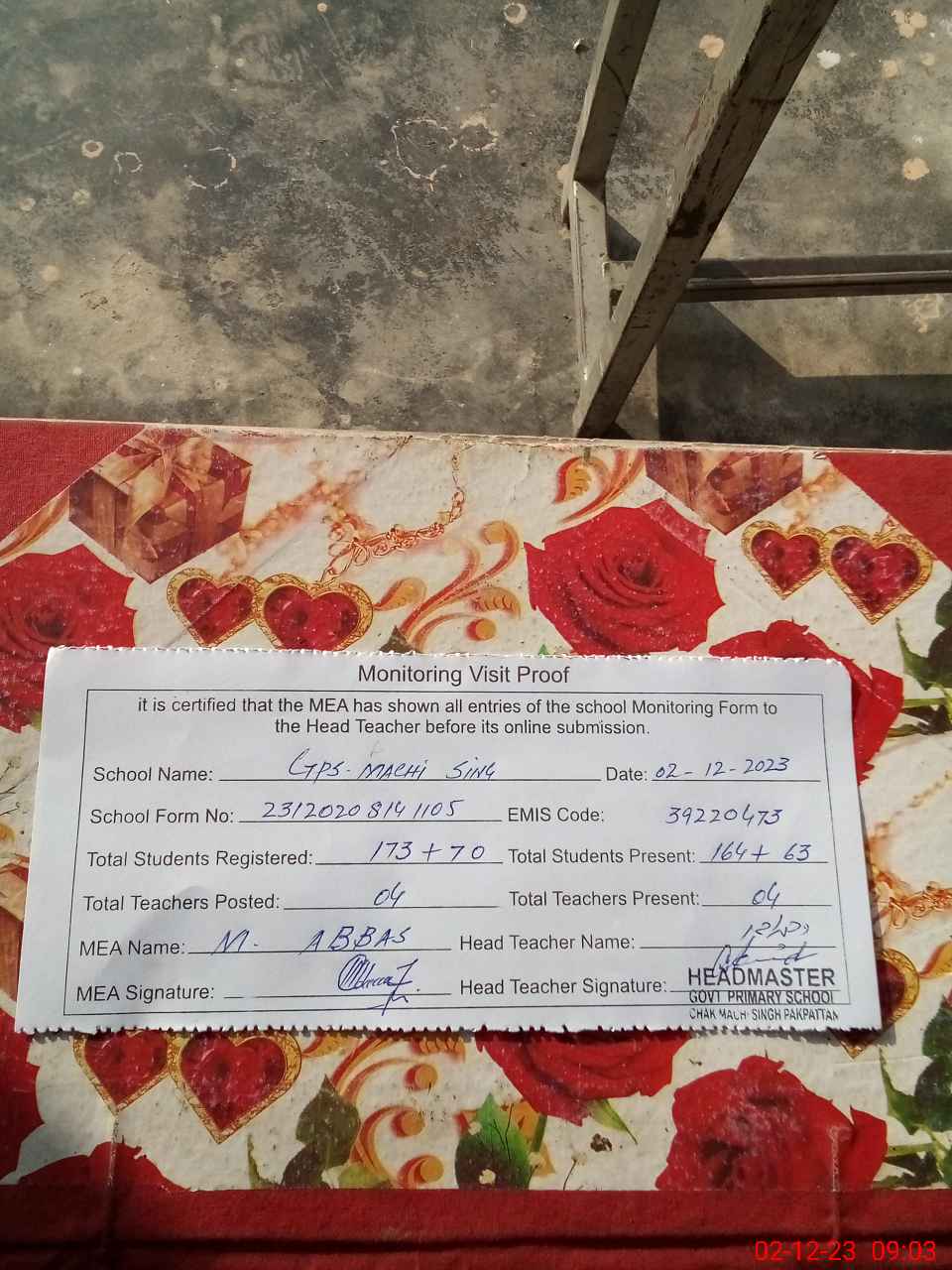 | EMIS Code: 39220473 | Name of School: GPS CHAK MACHI SINGH | |||