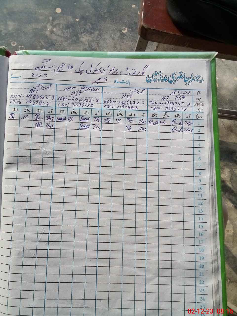 | Name: Mu**** Ri**** Designation: (School Headmaster's/Headmistress's) PST Phone/Cell Number: 03**** |